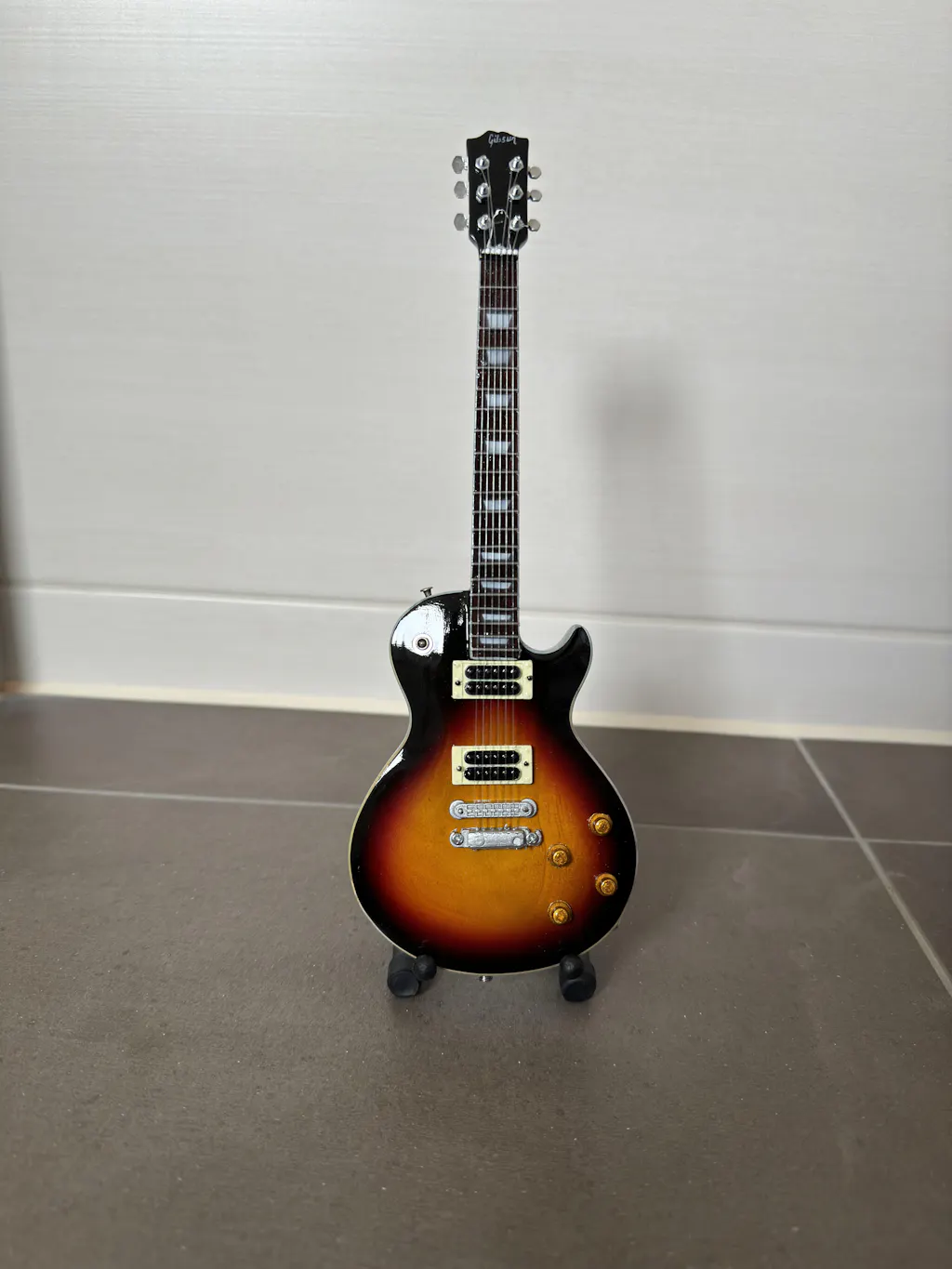 Introducing Axe Legends' miniature sunburst Les Paul replica guitar, famously played by Slash of Guns N' Roses fame. These Axe Legends mini guitars make the perfect gift for a beloved friend, a token of appreciation for Dad, or a special treat for yourself. Each guitar mini is meticulously crafted with exquisite attention to detail, embodying the spirit of legendary guitarists.